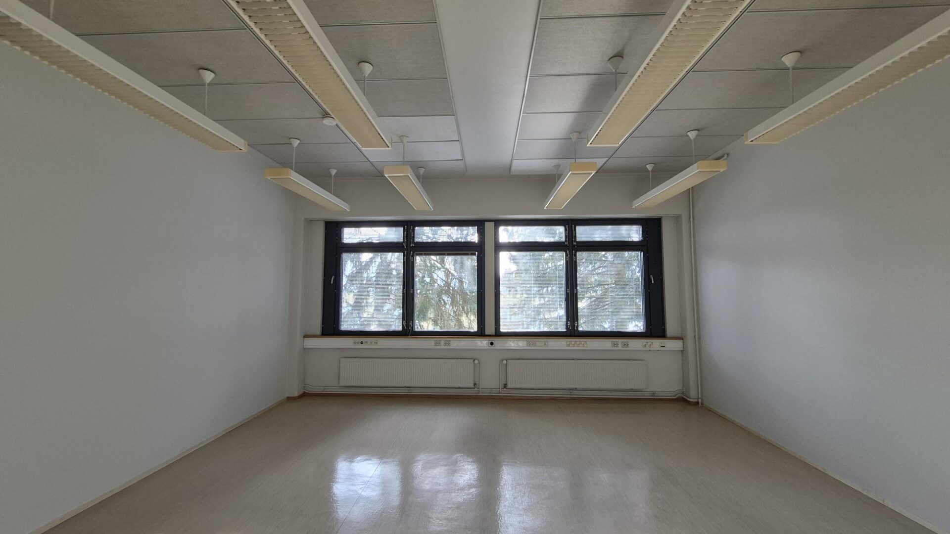 Toimistohuone suurilla ikkunoilla