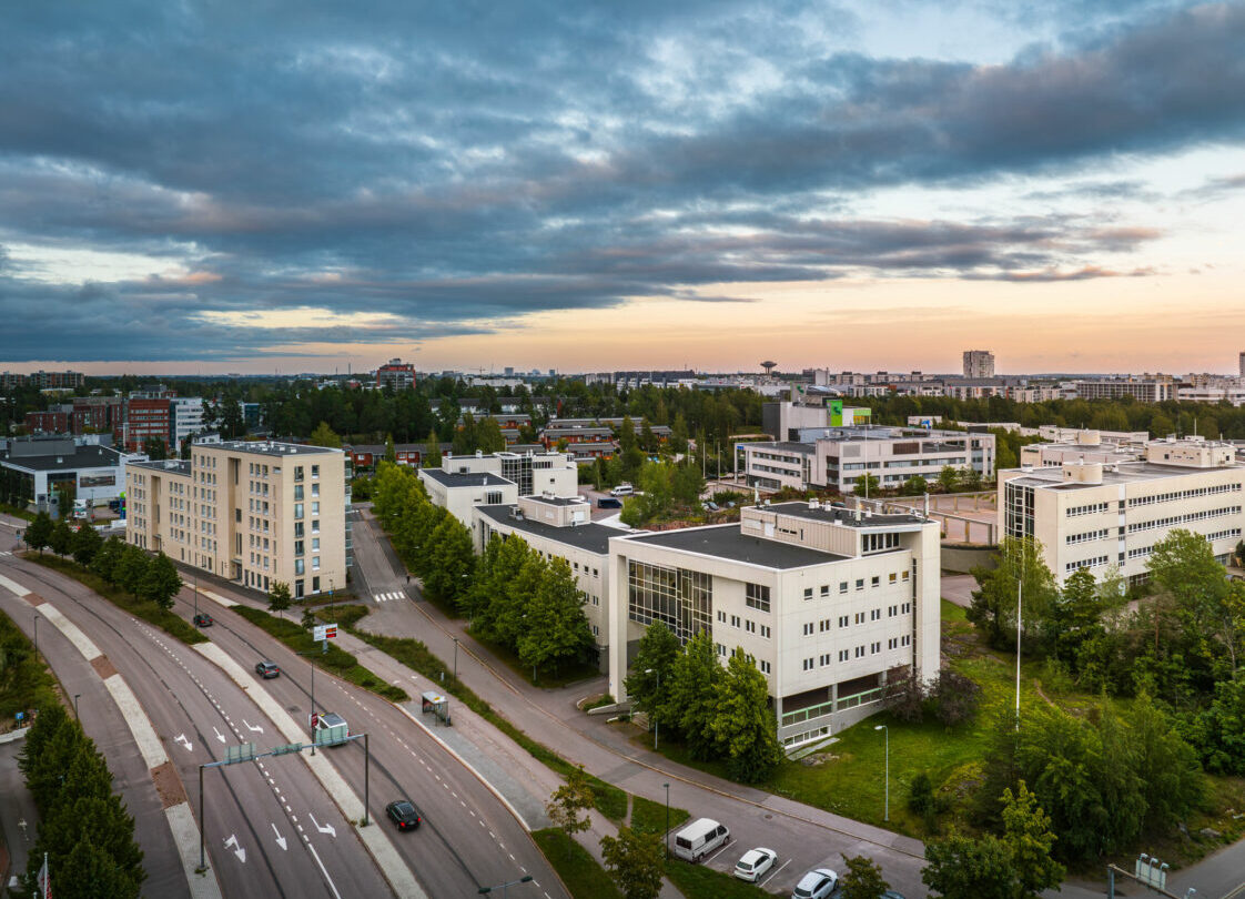 Espoon Friisilässä, kolmen erillistalon muodostamassa harmonisessa kokonaisuudessa, sijaitsee toimistotalo, jossa valo ei lopu kesken eikä ilma pääse seisomaan. Jäähdytetty ilmanvaihto takaa, että ideat pysyvät viileinä vaikka deadline kuumottaisi – ja ylimmän kerroksen saunatilat tarjoavat täydellisen paikan päästää päivän paineet höyryinä ilmaan. Täältä löytyy toimitiloja 150-500 m² välillä.