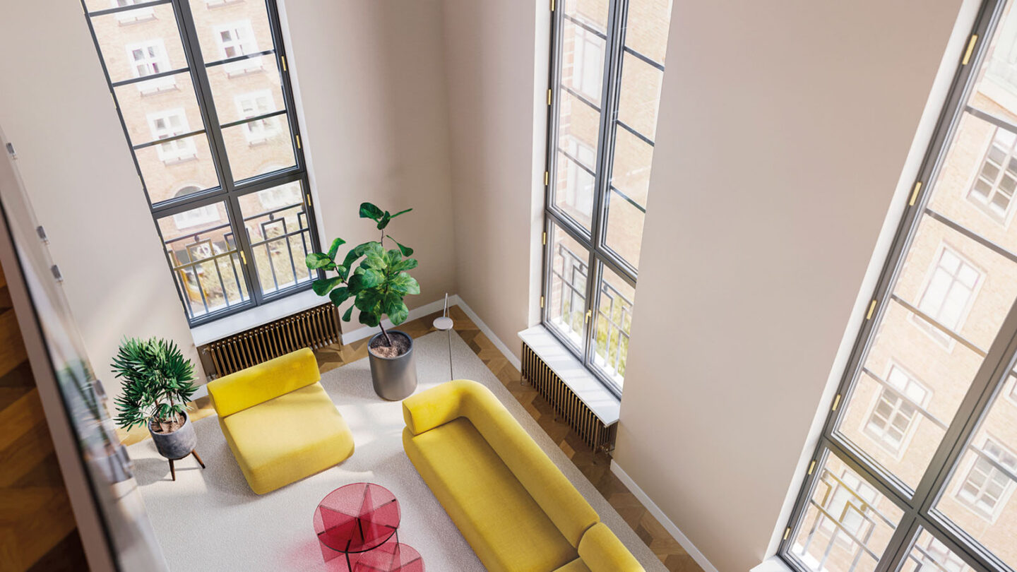 - 794 m² – 7.–8. kerros: Uniikki kaksikerroksinen tila, huonekorkeus jopa 6 m ja sisäiset portaat, yksi Helsingin hienoimmista toimistotiloista